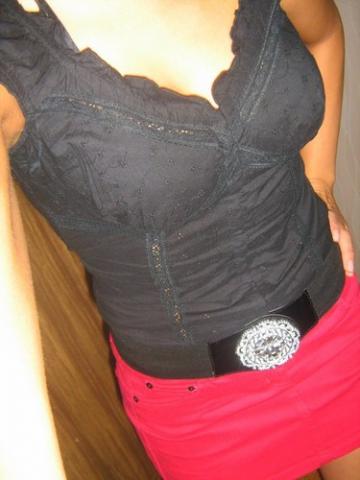 Ryškios raudonos spalvos, visiškai naujas, tik matuotas, trumpytis, viso ilgis 30cm :) per susegima 40cm*2, per klubus 45cm*2 :)tempiasi, dydis S, bet manau laisvai ir M tiktų :)