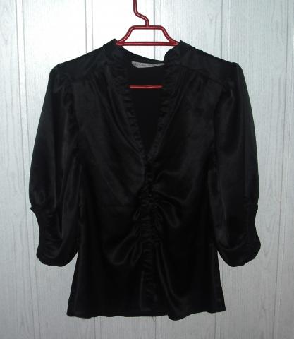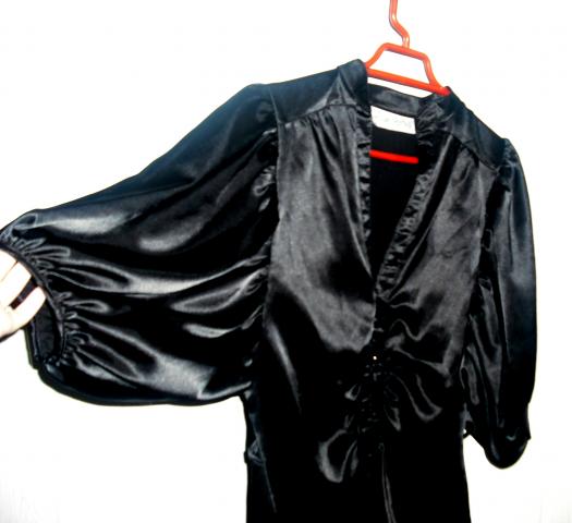 Šilkinė palaidinė pūstomis rankovėmis.Fotografuota ant M dydį nešiojančios merginos. Parasyta, kad dydis S. Apimtis per krūtinę 29cm. Rankovės ilgis 26cm.