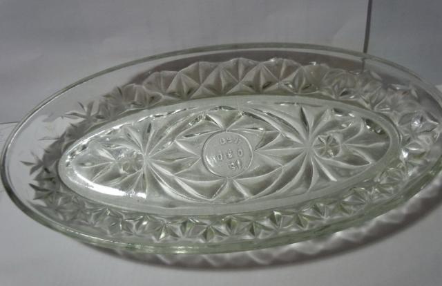 Senų laikų, storo stiklo, pailga stiklo lėkštė - silkinė . Ilgis - 25,5 cm ir plotis (plačiausioje vietoje) 12 cm. turiu 2 vienetus