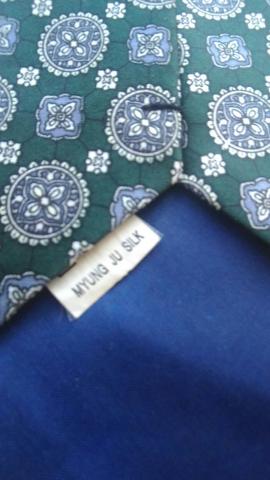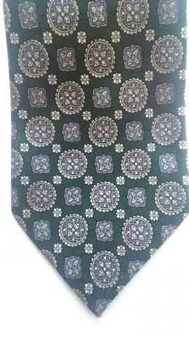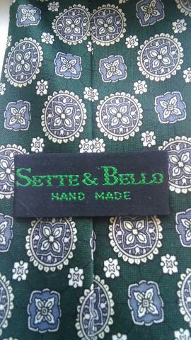 „Sette & Bello“ rankų darbo, „Myung Ju“ šilko kaklaraištis, gėlėtu raštu. Plotis plačiausioje vietoje 9,5 cm.