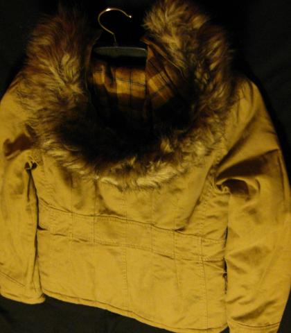 kelis kartus vilkėta šilta kapučino spalvos striukė, su kailiuku ant kapišno. kailiukas nusisega. stiukė užsisega užtrauktuku, paskui dar trimis sagutėmis. vidus dryžuotas. tinka nešioti tiek rudenį tiek žiemą ar pavasarį.