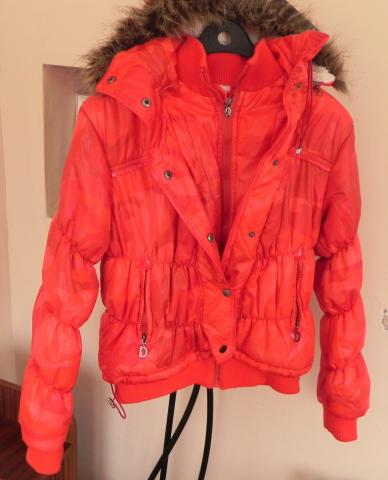 Šilta striukė. Tą pakabą ( na, kur kabinasi ant pakabos) prisiuvau pati, nes nepatogu buvo be jos. :D Užsidėjau kelis kartus ir nebenešiojau, nes per didelė. :) Striukės spalva raudona, foto gal kiek per šviesi raudona išėjo.