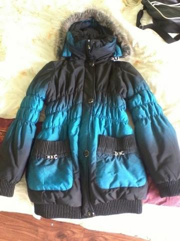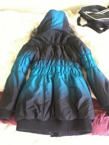 Juodai mėlyna striukytė yra labai šilta, graži ir patogi. Yra kapišonas, kuris nusiima, dvi kišenės išorėje ir dar viena viduje, su dvejais užtrauktukais