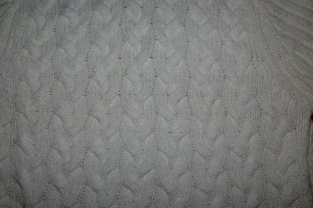 "Aprangoje" pirktas baltas, labai šiltas megztinis. Gražaus rašto, patogus