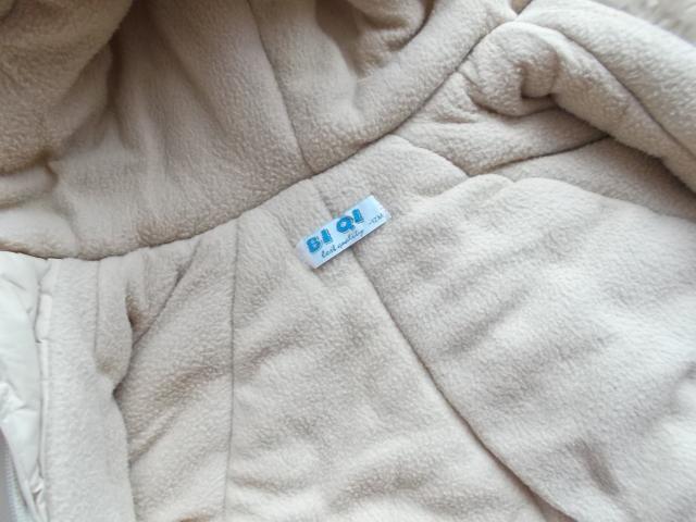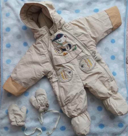 visiskai naujas,smelio spalvos. etiketej parasyta 12m. taciau 75cm ugio vaikui jis per trumpas. rankoves ilgis nuo petuko 35cm,nuo pazasties-20. klesne ( nuo klynuko) -20cm, su kapisonu- 80cm ilgis. (viskas matuota isorej,aisku). viduj nuo kaklo iki klynuko-40cm.