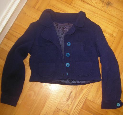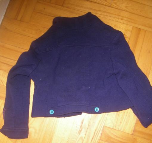 Devėtas, bet nenudevėtas, labai šiltas, stilingas švarkelis. Dydžio nerašo, bet bus S/M. visas ilgis:37.5cm, per krutine 40-41x2cm