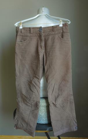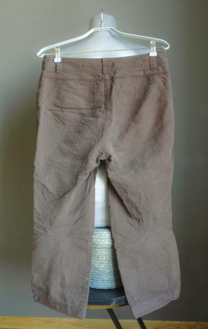 Šaunūs chaki spalvos bridžai, stipraus bet gan lengvo lyg glamžyto audinio, militaristinio stiliaus, įdomus ir patogus modelis, apačioje sagos, galimą atisegti ties kulkšnim, nedaug nešiotos, deja dabar per didelės gerokai. Mielai mainau į vertingus daiktus. :)