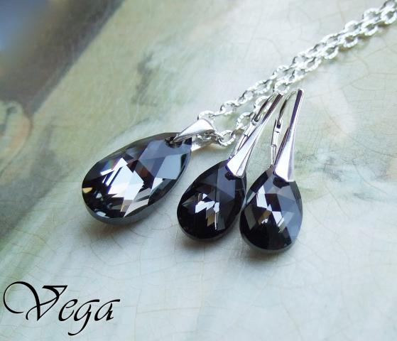 Swarovski kristalai.Sidabras. Auskarai 3 cm, pakabukas 2.6 cm (be grandinėlės)
