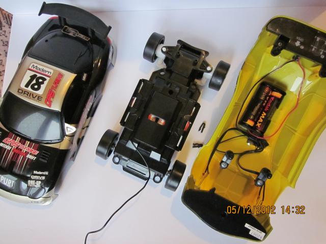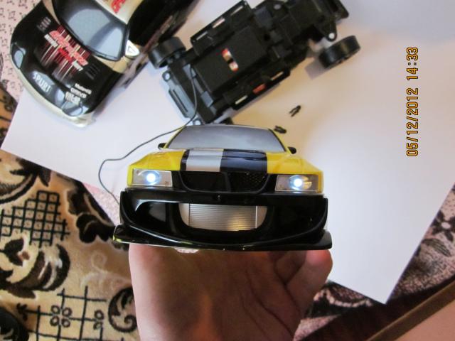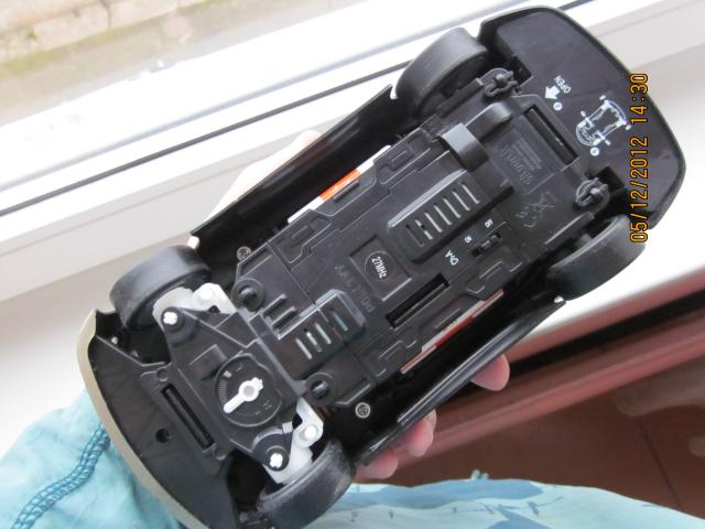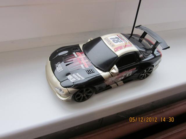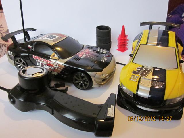 Radio bangom (27Mhz) valdoma mašinytė. Maitinama 8 AA baterijom ir viena krona (9v baterija) pulteliui. Mašinytė NESKIRTA ŽAISTI LAUKE. Varoma visais keturiais ratais i priekį ir tik dviem galinias atgal. Greita. Vienas mašinytės viršus modifikuotas, įdėjau lemputes su jungikliu, bet tai galima išardyt, jei kliūna. Su ja žaista daug, tačiau viskas veikia, buklė gera. http://www.youtube.com/watch?v=VWw4OinvKL4 , http://www.youtube.com/watch?v=PxVDH_VcpQA