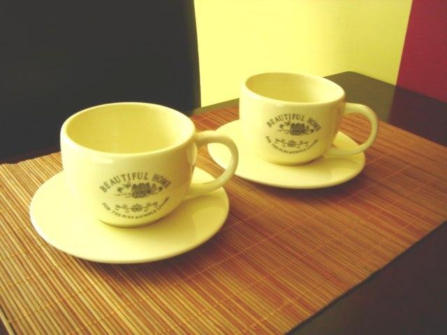 du simpatiski puodeliai su lekstutemis. Beja, viena lekstute truputeli nuskelta,bet tokios pat spalvos kaip glazura,todel defektas nerezia akies :)