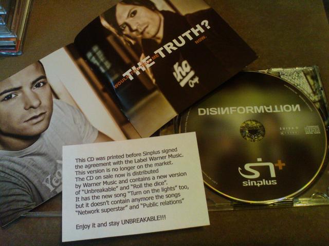 sin plus - disinformation - originalus cd ( kazkuriu metu sveicarijos atstovai eurovizijoje ), is rinkos isimtas retesnis ju cd. tracklistas nuotraukoje.