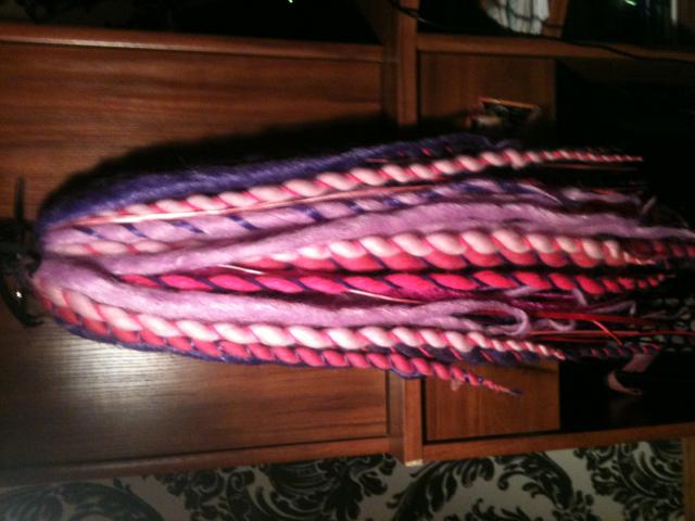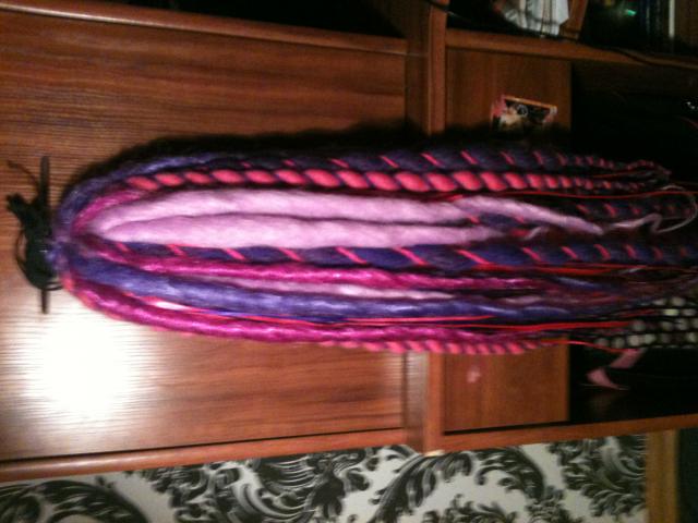 Pagal uzsakyma pagaminti dreadai 170lt apie 70cm ilgio,viena puse sviesesne ,kita tamsesne. Yra irista dredu is siulu, bei raisteliu,tad tikrai atrodysite isskirtinai ;] stipriai laikosi,susirisa guma.