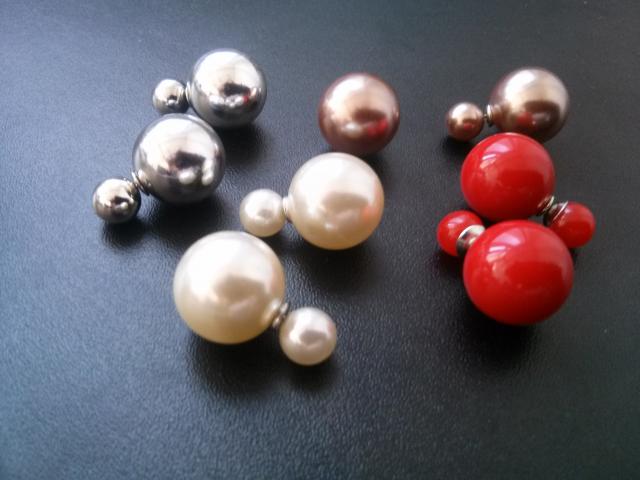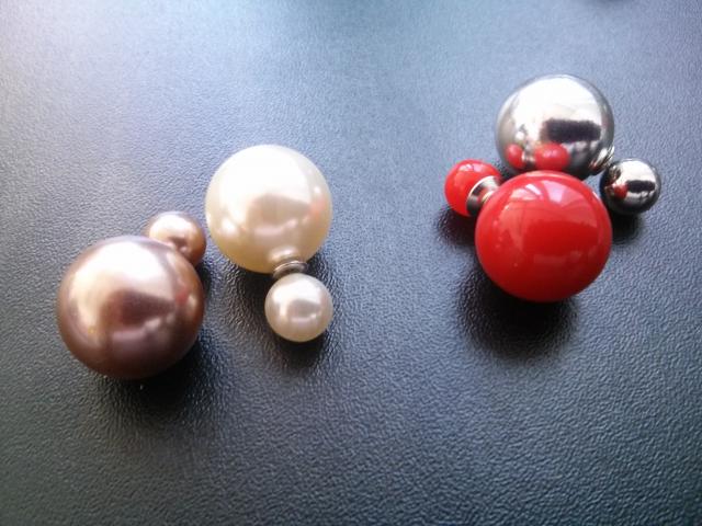 Parduodu šį sezoną ypač madingus, dvigubus perlų karoliukų auskarus. Mažojo perlo skersmuo 0,8 cm, didžiojo perlo skersmuo 1,5 cm. Nedėvėti. Spalvos: balta, rauudona, bronzinė, ruda. Galima teirautis tel. nr.: 862183111