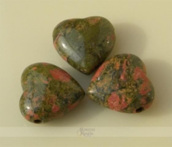 Foto "pasiskolintas" Unakito akmens širdelė (akmenukai be ispjovu viduje) ŠIRDIS - meilės, aistros ir atsidavimo simbolis, unakitas šias savybes dar labiau sustiprina.Dydis - apie 3 X 2.5 cm.