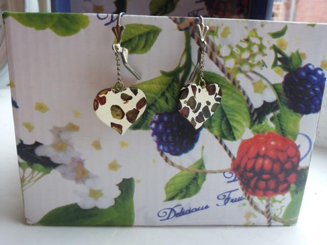 Auskariukai, širdutes su gintaro gabaliukais, atrodo labai gražiai, Į kaina siuntimo išlaidos neįskaičiuotos