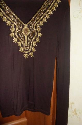Miela palaidinė ilgomis rankovėmis. Siuvinėta karoliukais. Būklė - labai gera, nė vienas karoliukas neiškritęs. Dydis s/m, m. Jeigu kas domina, prašom klausti;)