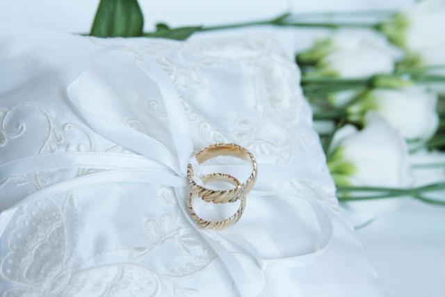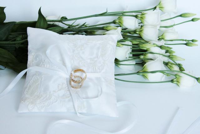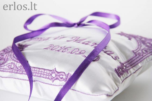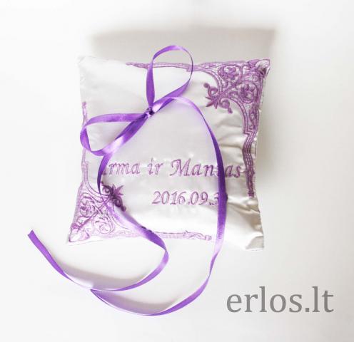 Siuvinėta pagalvėlė vestuviniams žiedams