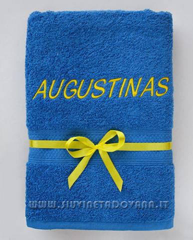 Storas medvilninis rankšluostis, dydis 70x140 cm, su siuvinėtu vardu.