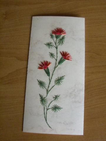 Kokybiškos rankų darbo siuvinetos atvirutės. Puikiai tinka bet kokiai progai pasveikinti artimajį. Šios atvirutės širdžiai daug mielesnės nei pagamintos spaustuvėje. Pamėginkite padovanoti tokia atvirutę mamai, močiutei ar netgi draugui, ir pamatysite kaip tokia nebrangi dovanėlė jiems taps labai miela :)