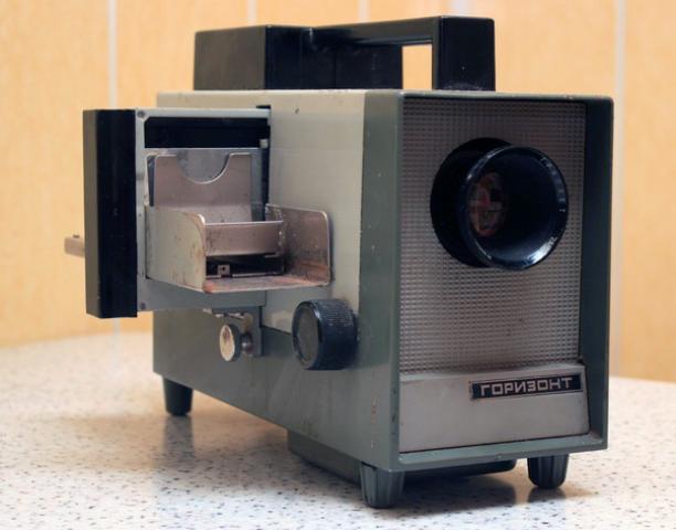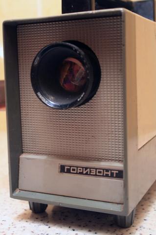 horizontas senasis skaidrių projektorius. Optika tvarkoje, mechanika tvarkoje, ventiliatorius veikia tvarkingai, perdegusi lempa.