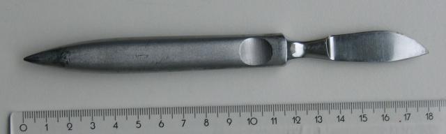 Didelis tarybinių laikų medicininis skalpelis. Naudotas. Sunkus. Atšipęs. Pagalandus galima naudoti. Ypatingai geras medicininis plienas. "Limpa" prie rankos.