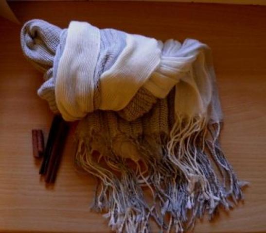 Skara - šalis. Pilkos/baltos spalvos. Šiek tiek išpešiota.