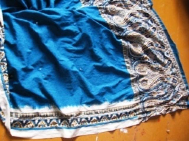 Skarelė. Labai didelė, galima naudoti viengulei lovai apdengti. keliose vietose yra plyšusi ir siūta, Nesimato kai ant kaklo užsiriši:)
