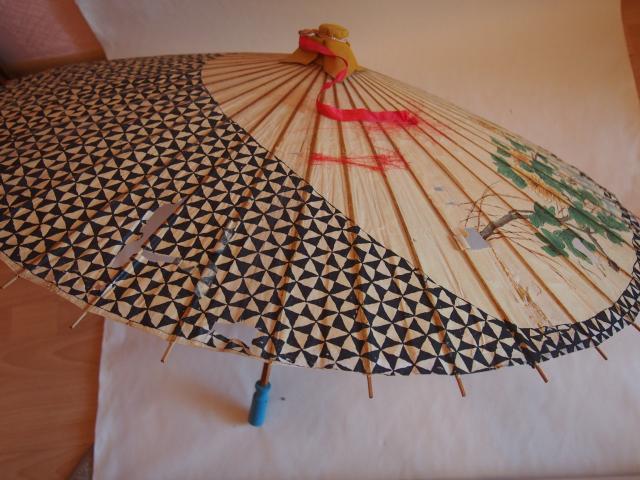 Ilgis 64cm,popierinis,reikalinga restauracija,geras mechanizmas,puiki interjiero detalemediniai,bambukiniai.