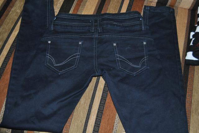 Beveik nauji džinsai, nusipirkau, vieną kartą užsidėjau, bet neprilipo man, labai patogūs, tamprūs, spalva tamsiai mėlyna. S/M
