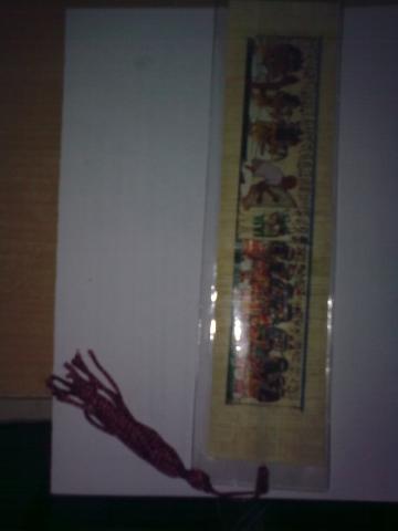 Skirtukas iš papiruso su piešinėliu plastike, suvenyras iš Egipto.