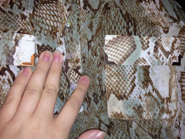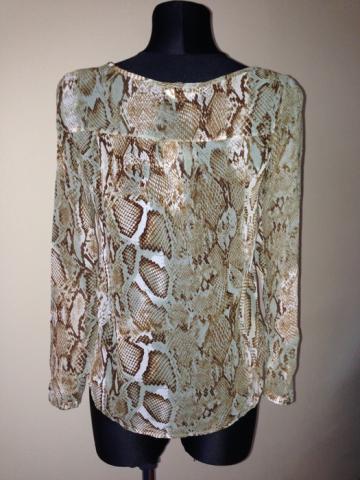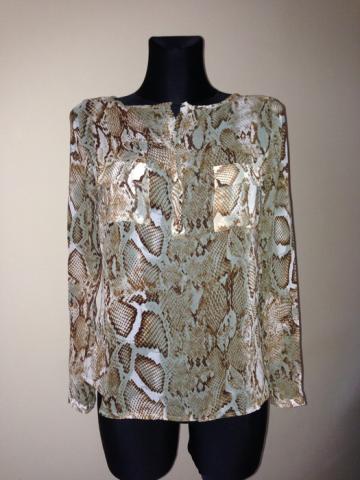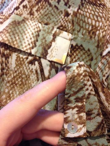 NAUJA *dydis: 40/12 *lengvutė, pusisu perregima palaidinė; *lavai gražiai akcentuotos kišenėlės(kengvučiai aukso spalvos metalo kampučiai); *priekyje paslėptas susagstymas su perlamutro sagutėmis su kilputėmis: *po vieną perlamutro sagelę rankogaliuose; *truputi užapvalinta apačia ir truputi ilgesnė nugaroje; *nors etiketėje nurodytas L dydis, iš tiesų matmenys rodo, kad atitinka M (40) dydį; *pečiai: 40cm; *krūtinė: 94cm; *liemuo: 94cm; *plotis apačioje: 103cm; *ilgis: priekyje-58cm, nugaroje-6