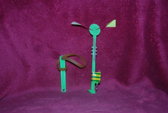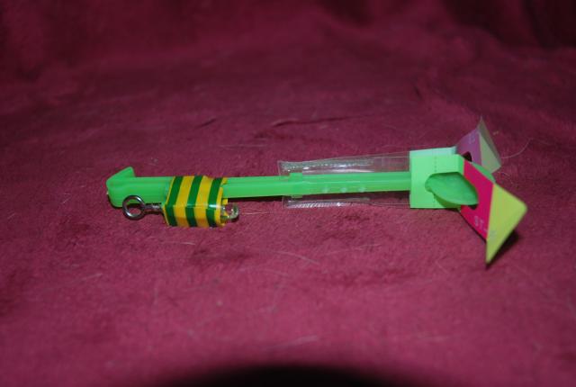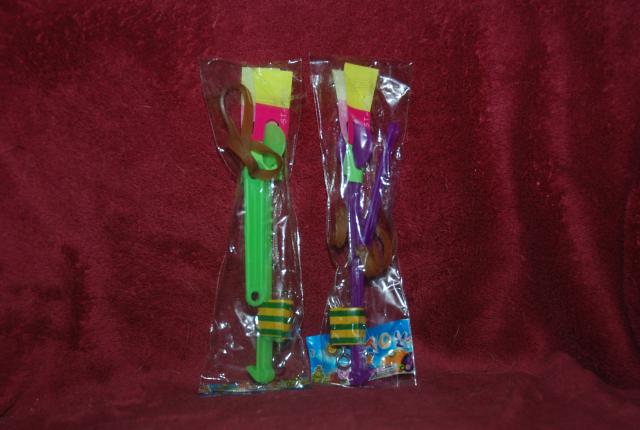 Visiškai nauji, svaidyklės principu veikiantys žaisliukai su naktį šviečiančia lempute. Labai gražiai iš lėto leidžiasi ir sukasi. Yra žalios ir violetinės spalvos. Ilgis apie 23 cm. Labai smagus daikčiukas.
