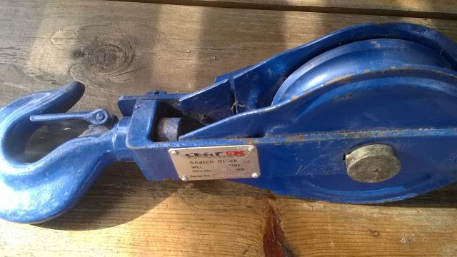 Skriemulio ir kablio blokas. Nenaudotas. Šiek tiek parūdijęs.