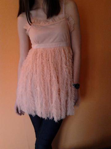 Labai daili suknutė, persikinės spalvos, princesiška ir žiaaaauriai graži ! Nuo krūtinės ilgis - 65 cm Šleikučių ilgis - 15 cm Modelio dydis S/M - suknelė tinka M/L dydžiui