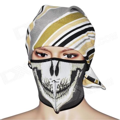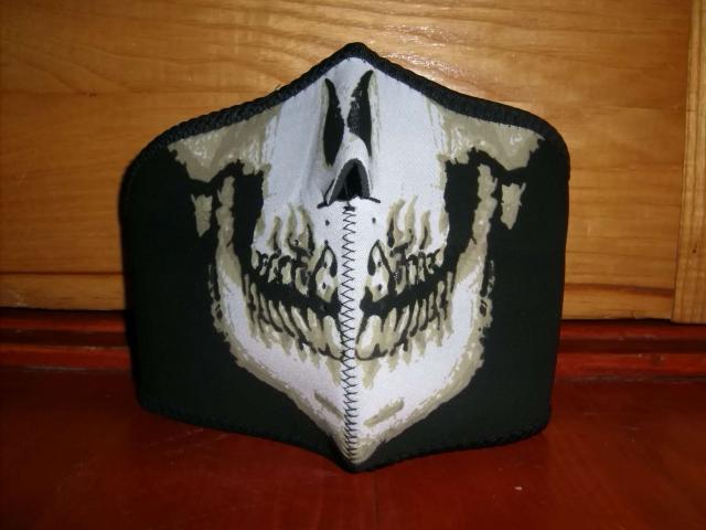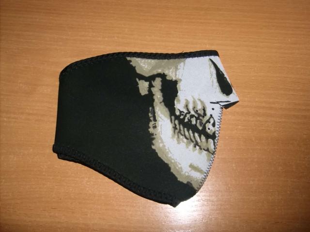 Veido kaukė lauko sportui, teminiam vakarėliui ar važinėjimui motociklu. Nauja. Dydis universalus.