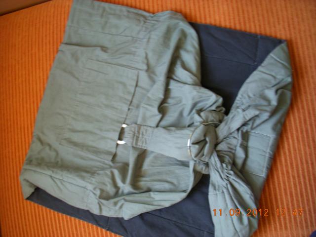 Puikus ir patogus daiktas nešioti prie savęs kūdikį. Išorė žalia, vidus juodas.