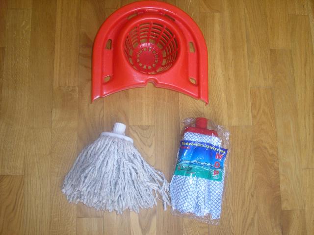 Sluotu antgaliai uzsukami ir priemone ju grezimui dedama ant kibiro, uz viska 20Lt. Galima pirkti atskirai. Po 7Lt uz daikta :)