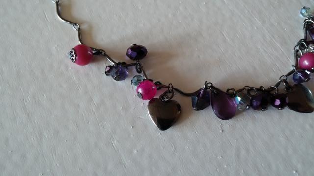 Gražus trumpas "Next" vėrinukas. Įvairių violetinės - rozinės spalvų atspalvių karoliukais.