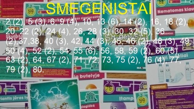 SMEGENISTŲ KORTELĖS. Skaičius nurodo kiek yra vnt.