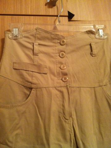 Užsidėjau vos porą kartų, atrodo kaip naujos. Labai gražiai pabrėžia liemenį. Smėlinės spalvos kelnės tiks ir oficialiai ir laisvalaikio aprangai. Atsiprašau, nutraukoje neišlygintos. Tiks XS-S dydžiams. Išmatavimai: 34 cm x 2 liemuo, 46 cm x 2 klubai, 74 cm x 2 ilgis nuo klyno.