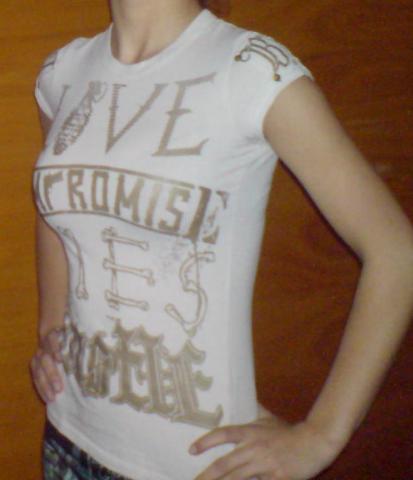 dydis tinka ir xs ir s. nugaroje iskritusios kelios kniedes todel vietoj aukso spalvos jos yra baltos (matosi foto is nugaros). neistampyta,, nenunesiota, geros bukles.