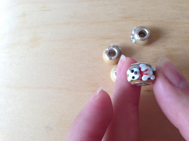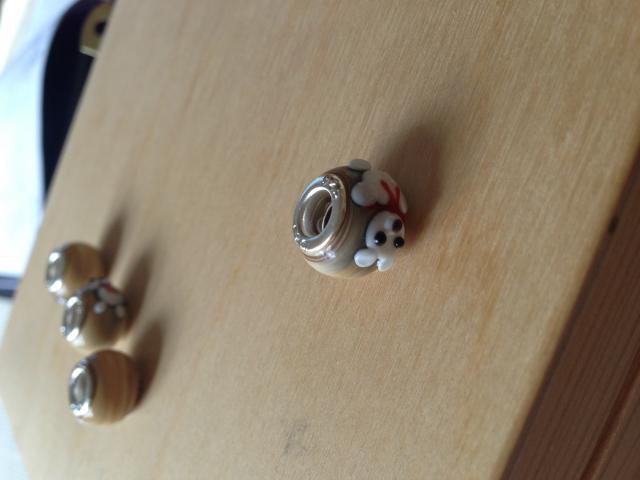 Smėlio spalvos Murano stiklo karoliukas su meškučiu