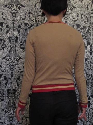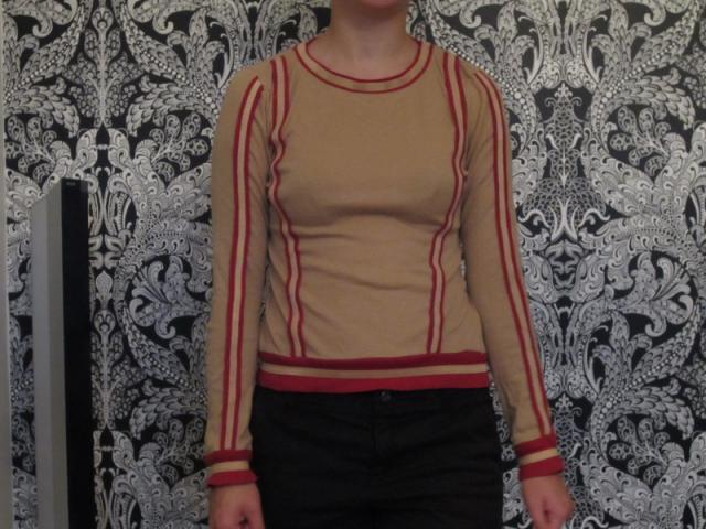 Smėlio spalvos palaidinė su raudonais dryžiais