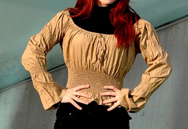 Smėlio spalvos puošni palaidinė XS-S