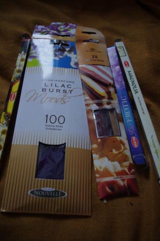 Daug įvairių smilkalų. Labai skaniai kvepia.