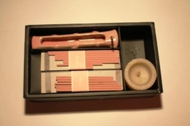 nėra vienos žvakės. gavau mainų būdu ir kadangi siuntė paštu tai dalis smilkalų sutrupėjo arba perlūžo;/ nuotrupų nefotografavau bet jų gana daug ir jas visdar galima smilkinti. rožių kvapo.