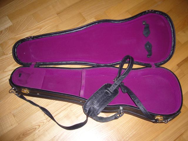 Futliaras tinka 1/4 ir 1/2 smuikams. Futliaras iš natūralios odos,kietas ir tvirtas,vidus violetinis. Kaina 250lt. Viduje yra du stryko laikikliai,taip pat dėžutė susidėti kanifolijai ir pan. (: