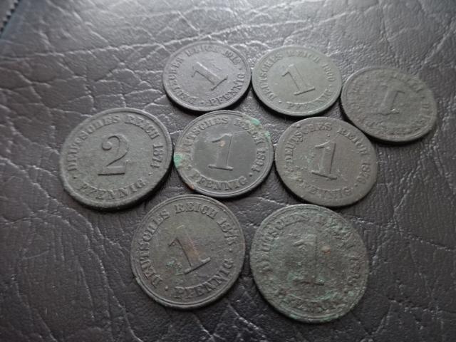 foto yra: 1fenningas 1875,76,94,98,1900.12m. 2feningai 1874m po eura
