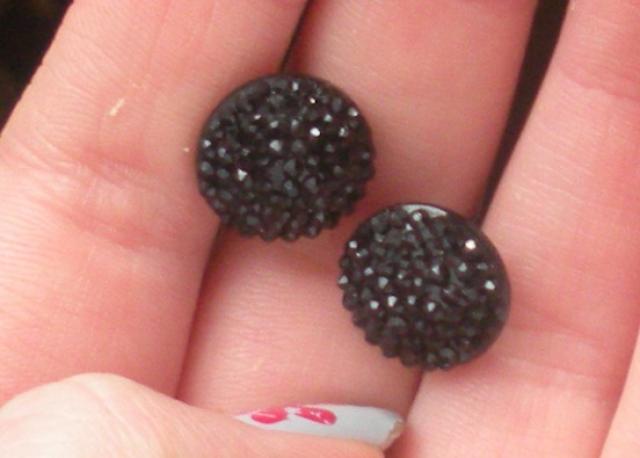 grazus, labai blizgantys, nenesioti juodi auskariukai