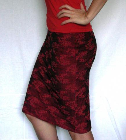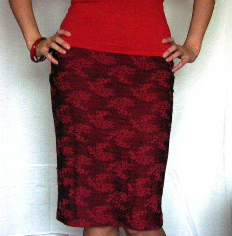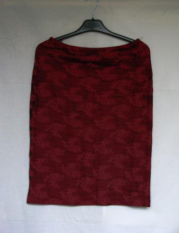 Gražus sodriai raudonos spalvos sijonas iš tamprios medžiagos, taigi tiks ir S, ir M. Išmatavimai ramybės būsenoje: ties liemeniu apie 34cm., klubai 47cm., ilgis 59cm. Nugaroje yra pasitampę siūlai (5 foto), bet tą galima sutvarkyti. :)